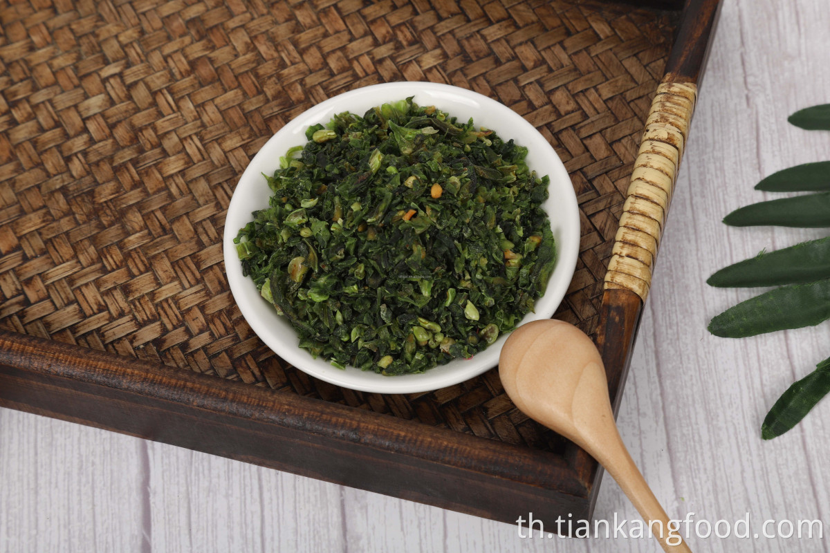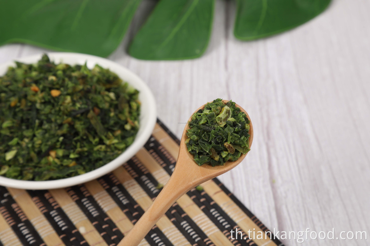 ถั่วเขียวแห้งที่หั่นบาง ๆ จะได้รับจากหัวหอมสีเขียวที่เก็บเกี่ยวสดใหม่ซึ่งจะถูกเลือกล้างตัดตัดและแห้งจากนั้นเลือกเครื่องจักรการเลือกมือการตรวจสอบบรรจุภัณฑ์และการอนุมัติ ผลิตภัณฑ์นี้จะไม่เติบโตจากเมล็ดดัดแปลงพันธุกรรม ก่อนที่จะบรรจุภัณฑ์ผลิตภัณฑ์จะได้รับการตรวจสอบและส่งผ่านแม่เหล็กและเครื่องตรวจจับโลหะเพื่อกำจัดการปนเปื้อนโลหะและไม่ใช่เหล็ก ความไวของเครื่องตรวจจับจะต้องต่ำสุด 1.5 มม. ผลิตภัณฑ์จะต้องปฏิบัติตามแนวทางการผลิตที่ดีในปัจจุบันในการผลิตและบรรจุภัณฑ์