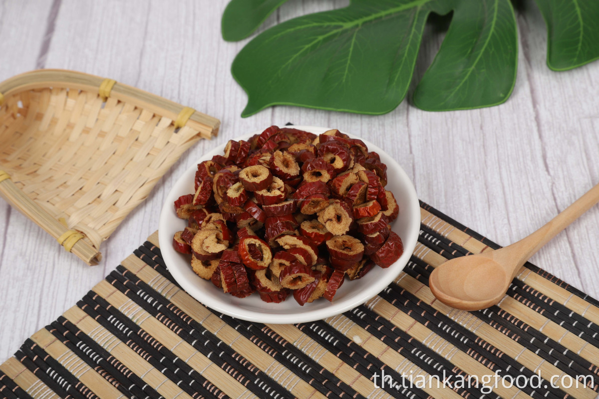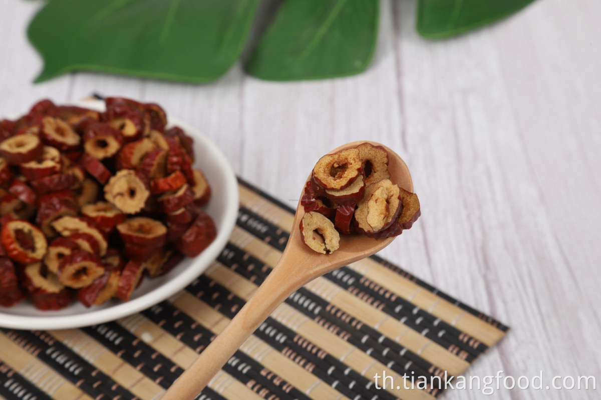 jujube แห้งคือการปล่อยน้ำทั้งหมดผ่านเทคนิคการอบแห้งต่างๆ วันที่สีแดงแห้งอุดมไปด้วยสารอาหารและวิตามินซีและปริมาณน้ำตาลสูง มันเป็นยาชูกำลังที่ดีและมีผลในการปรับปรุงภูมิคุ้มกันของมนุษย์ วันที่สีแดงแห้งสามารถส่งเสริมการผลิตเม็ดเลือดขาว, คอเลสเตอรอลในเลือดต่ำ, เพิ่มซีรั่มอัลบูมินและปกป้องตับ วันที่สีแดงแห้งอุดมไปด้วยวิตามินซีซึ่งสามารถแปลงคอเลสเตอรอลส่วนเกินในร่างกายเป็นกรดน้ำดี วันที่สีแดงแห้งยังอุดมไปด้วยแคลเซียมและเหล็กซึ่งสามารถบำรุงเลือดป้องกันโรคโลหิตจางหลังคลอดและโรคกระดูกพรุน